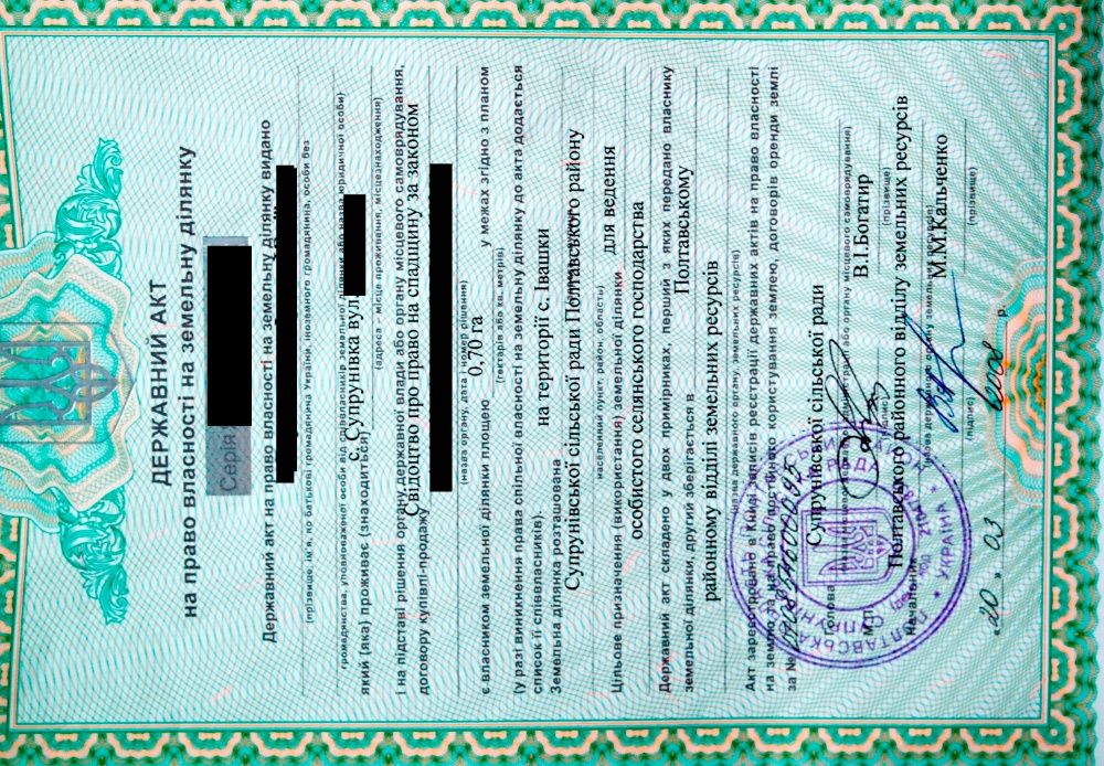 Участок земельный 70,0 соток. с.Ивашки. 7 км. до Полтавы.; Земельный участок 70,0 соток приватизированный, обособленный, готовый к продаже. Почти даром! Нажодится на территории с.Ивашки Супруновского сельсовета. Участок чистый, без деревьев и построек , ведется посев технических культур на сено. Не пай, целевое назначение -" для ведення особистого селянського господарства".. Удаленность по дороге до одной из центральных улиц Полтавы и остановки "Великотырновская" -7,9 км. До автовокзала г.Полтава - 7,0 км. До трассы Киев-Харьков и остановок автобуса - 1,8 км...