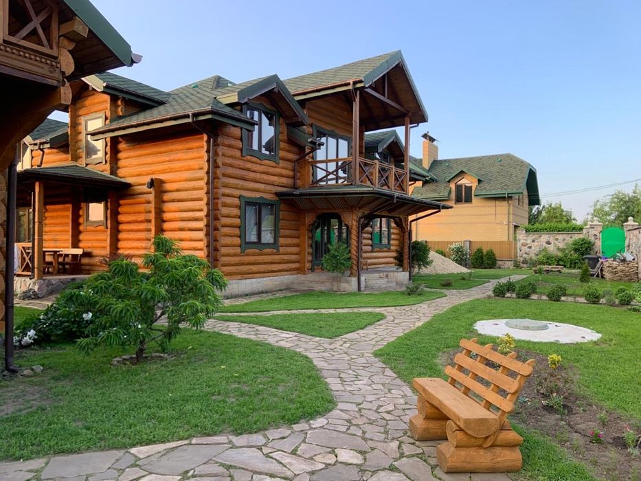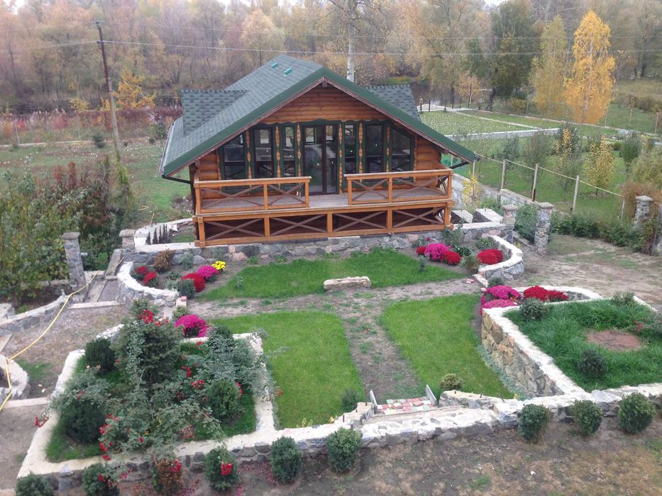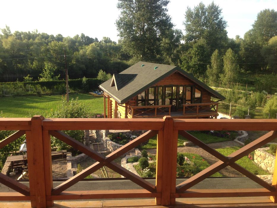 Двохповерхова баня 150 м2, на першому поверсі кімнати для бані, бассейну,комната відпочинку,, на другому поверсі кімната для більярда з вітражними вікнами і виходом на дві тераси с виглядом на річку. Від бані до річки 50 м. Підключено водовідведення