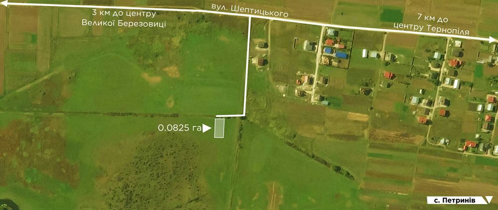 Продам земельну ділянку під забудову площею - 0.08 га; Ділянка знаходиться в смт.В.Березовиця, на межі з с.Петрики. Власник. Під будівництво будинку, котеджу. Ділянка рівна, полога. Хороше розташування, близько до Тернополя - 2км. Район активно будується, поруч є будинки, комунікації. Без посередників. Реальному покупцю - реальний торг!!!