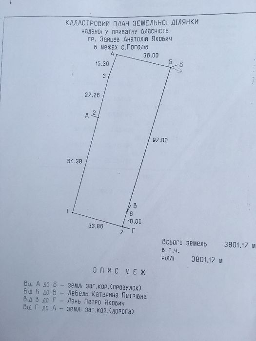 Продам участок 38 соток в селе Гоголев; Продаю участок в селе Гоголева, Боварской район, Киевская область. Размер участка 39 соток. Есть соседи рядом. Участок ровный, косится. Забора нету. Все вопросы по телефону. Собственник, документы на руках. Возможен торг.