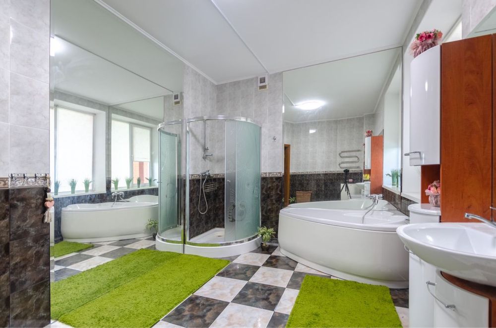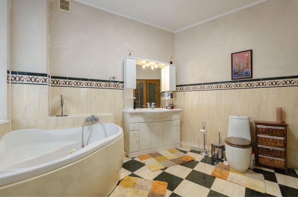 Весь ремонт из натуральных материалов исключительно высокого качества: немецкая сантехника, итальянская мебель, современная бытовая техника, полы двух этаже с подогревом; свое отопление (газ и тепловой насос); система кондиционирования.