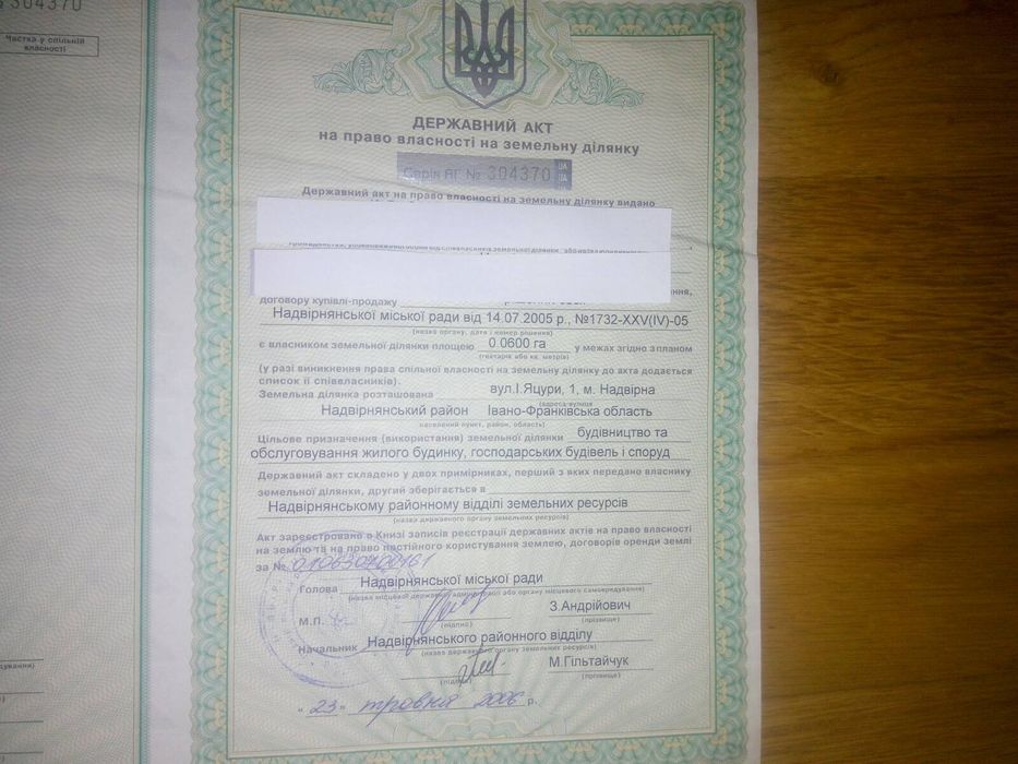 | Земельна ділянка: |