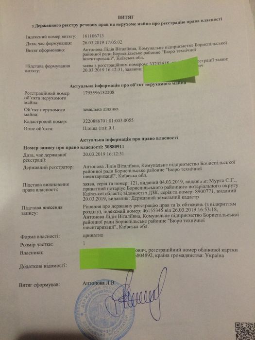 | Земельна ділянка: |