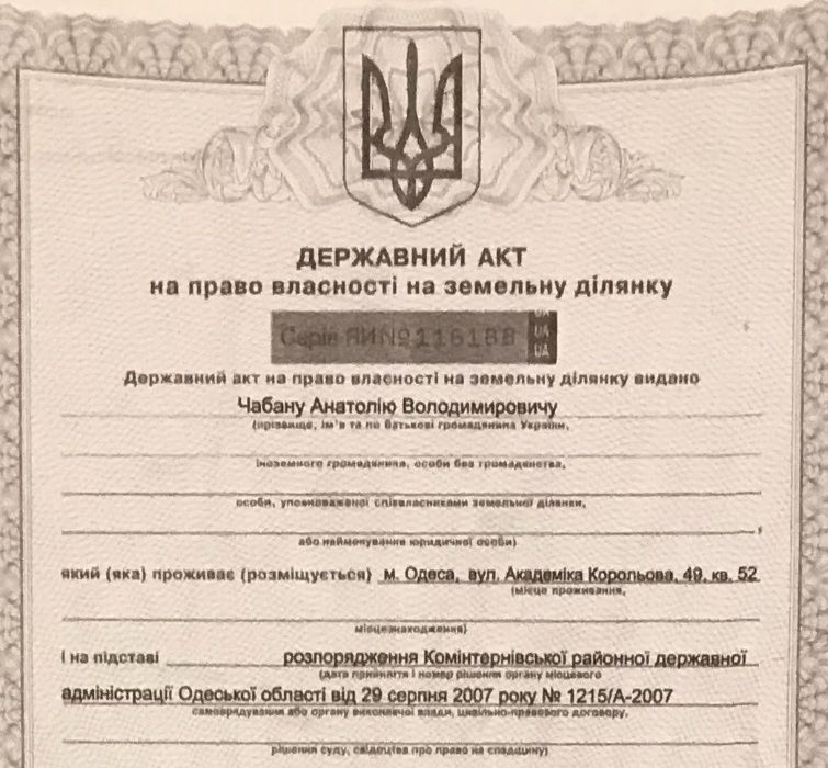 | Земельна ділянка: |