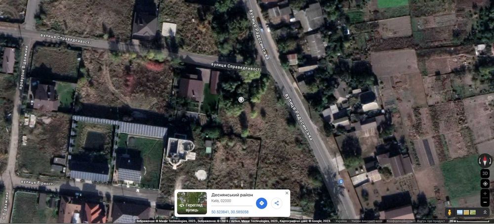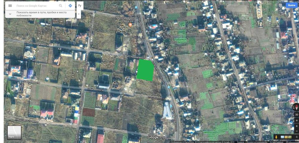 Деснянський; Земельна ділянка 12 соток (Троєщина); Власник. Затишна земельна ділянка 12 соток. Деснянський р-н, Троєщина. Знаходиться на перетині вулиць Справедливості та Радосинська ( колишня вул. Леніна). Заїзд з обох боків. Власник, всі необхідні документи в наявності. Поруч електрика, газ. Гарні сусіди (вже побудувалися). Також поруч школа, ТРЦ "Район", громадський транспорт, річка Десенка. Розташування ділянки дозволяє здійснити будь-який проект: від будівництва житлового будинку до реалізації свого бізнесу. В цей час на ділянці росте декілька великих дерев. За потреби, розчищення ділянки беру на себе. Цікавить продаж з повною оплатою і переоформленням ділянки на нового власника. Ціна 10 тис. дол. / одна сотка. Продаж максимально не спішний. Посередників прохання не турбувати.