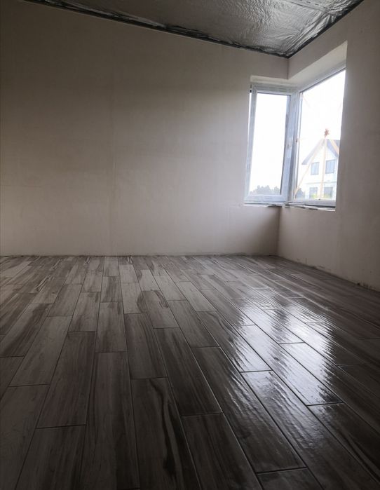 Всередині готовий під фінішне оздоблення, стіни поштукатурені в кімнатах, студія, ванна майже готові, скрізь на підлозі плитка керамограніт.