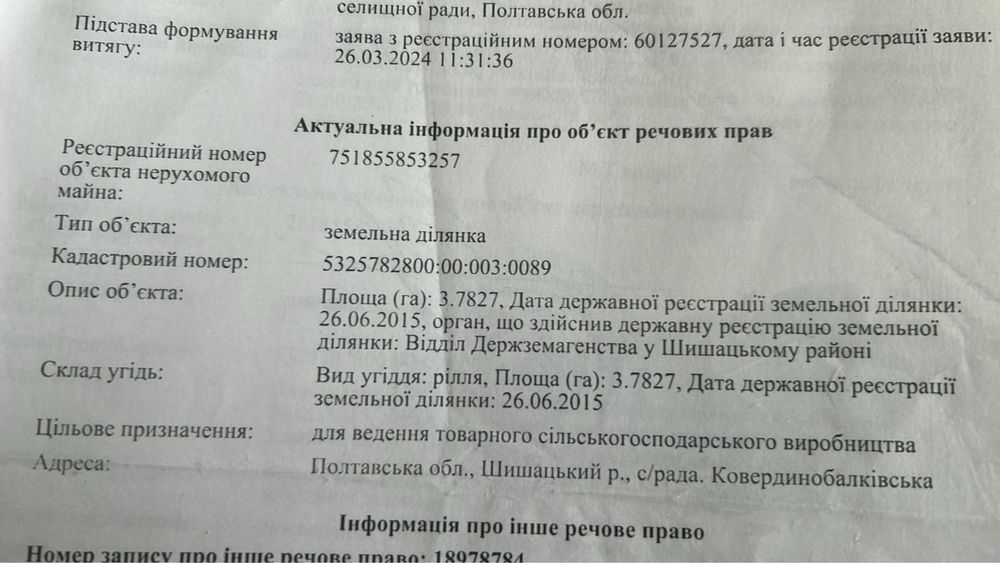 Терміново‼️Земельна ділянка(пай); Приватизована земельна ділянка (пай),площею 3,78Га в Полтавській області,Миргородський р-нОкремий заїзд ,чорнозем,обробляється,в аренді .Ціна 20тис $.Без торгу.Всі питання по телефону 06******22