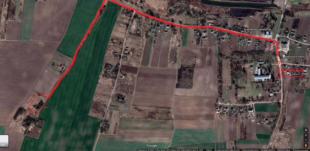Доїзд до ділянки грунтовою дорогою приблизно 1 км, хоч сама ділянка знаходиться неподалік центру села і сільської ради.