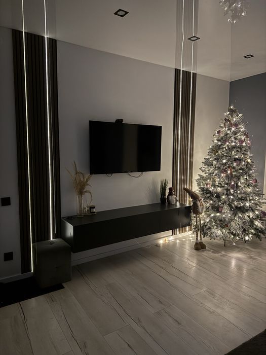 Вітальня обладнана диваном та телевізором, що робить її ідеальним місцем для відпочинку та розваг.