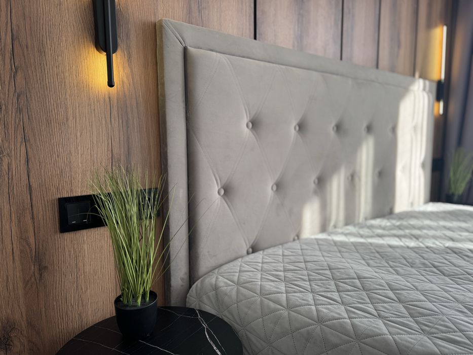 Потім ми переходимо до спальні. Спальня має велике двоспальне ліжко та приліжкових тумбочок та комоду з дзеркалом . Вона має велике вікно, яке пропускає достатньо природного світла, щоб створити затишну та комфортну атмосферу.