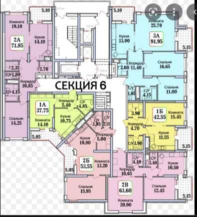6 секция 20этаж /25., общая площадь 53.55 кв.м.