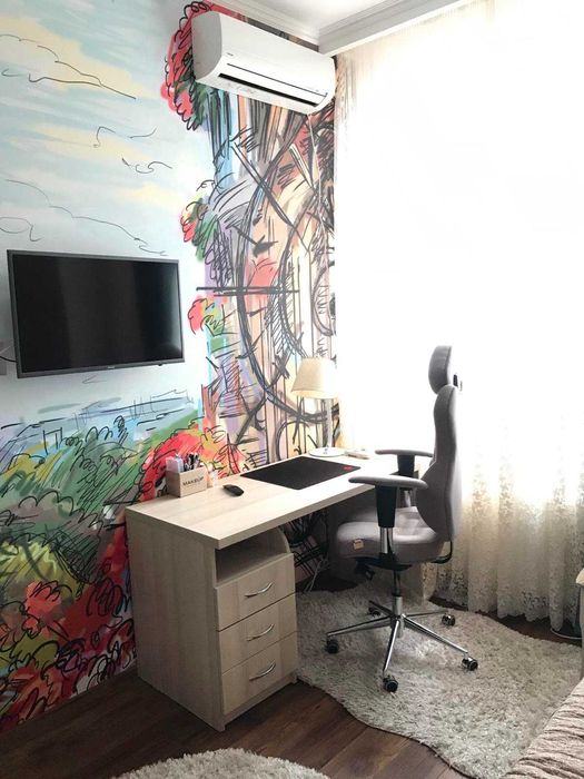 Распланирована в две спальни 15м2 и 12м2 и большая гостиная с кухней 65м2,раздельный санузел. Ремонту всей мебели и технике 3года.