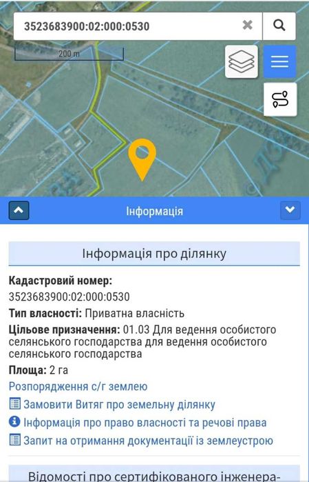 Продам земельну ділянку 2Га; Продаю земельну ділянку 2 га для ведення сільського господарства поблизу села Шляхове.(Кірвоградська обл.,Новоархангельський р-н.,Вільшанська сільська рада.)Ціна договірна.Усі документи в наявності,кадастровий номер 3523683900:02:000:053