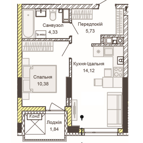 ЖК Empatika; Продається 1-к квартира у ЖК Empatika, метраж - 36.4 м². Кількість поверхів у ЖК — 5, обробка — під чистову. Поряд Транспортна розв'язка, Автостоянка.