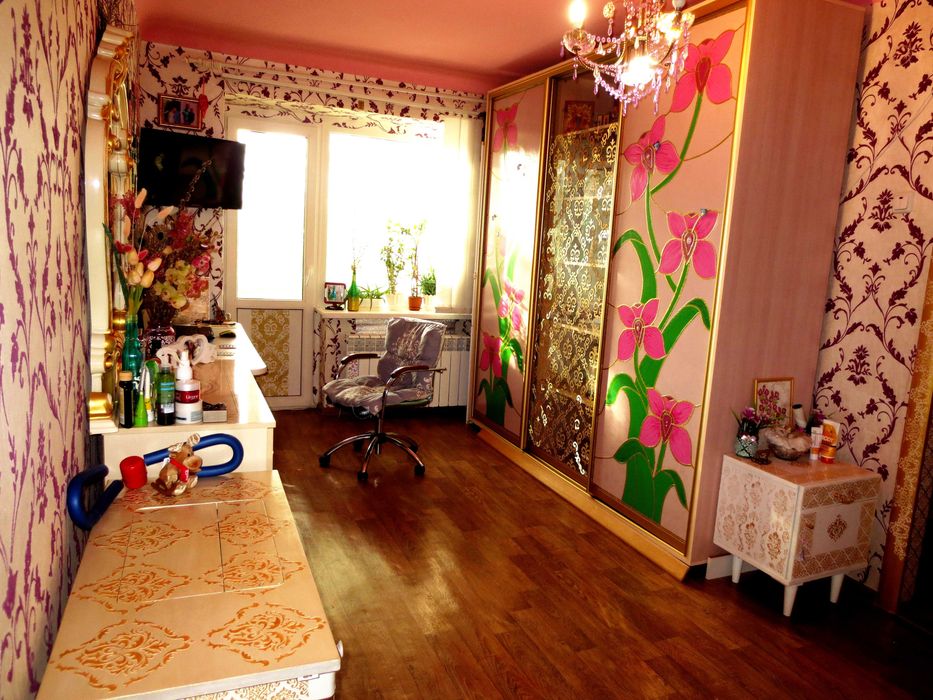 М/п окна , балкон застеклен и обшит сайдингом под бревно, м/п трубы и канализация новые. Полы в ванной с туалетом кафель, коридор, кухня и комнаты линолеум. На кухне плитка. Двери новые с витражом, наличники и коробка в декоре. Сантехника новая. Натяжной потолок с фотопечатью-орхидеи, делалось под заказ. Фотообои в спальне-орхидеи, фотопечатью под заказ. Радиаторы биометаллические. Балкон утеплен и поштукатурен штукатуркой + декор вензель. Квартира очень теплая и не угловая. Продаеться без мебели.