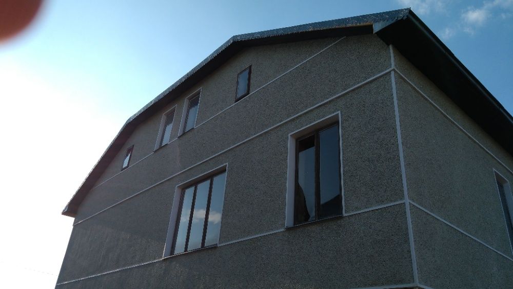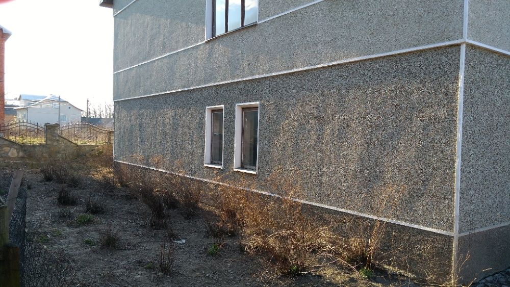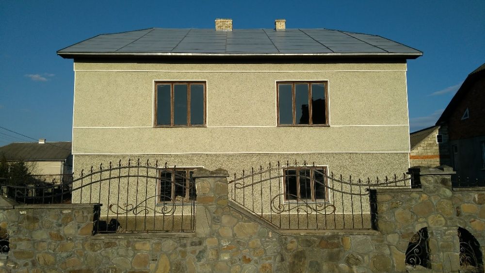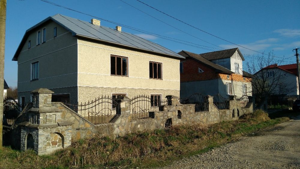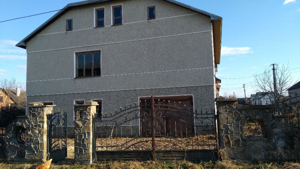 Продається приватний будинок в смт Брошнів-Осада. Площа ділянки – 0,08 га. Будинок на 2,5 поверхи, розміром 11 на 12 метрів, площею біля 300 м2. Фасад будинку – штукатурка, митий терезіт кольору морська хвиля. Дах критий прибалтійською оцинкованою бляхою. Між першим та другим поверхами перекриття залізобетонне, між другим та мансардою – дерев’яне. На першому та другому поверхах стіни (крім коридорів) поштукатурені, на другому поверсі стеля ліплена глиною, кинута електропроводка. Вікна та вхідні двері дерев’яні. Є літня кухня, кладова, хлів під одним дахом. Ділянка з двох боків обгороджена оригінальним кам’яним парканом протяжністю біля 80 м зведеним за індивідуальним проектом. Газ і електроенергія на відстані до 10 м від ділянки.