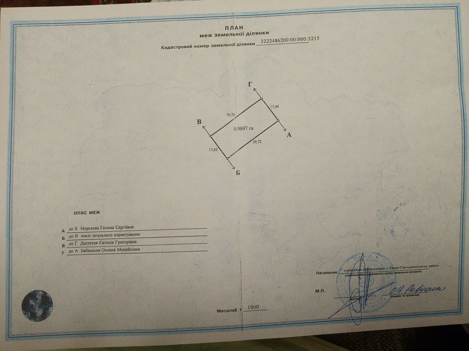 | Земельна ділянка: |