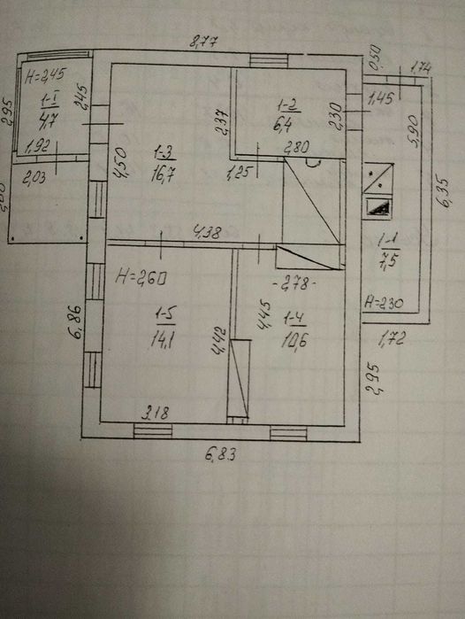 3 кімнати: спальня,прихожа, зал, кухня, віранда.