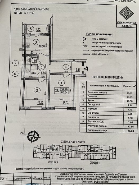 67м2, 23поверх