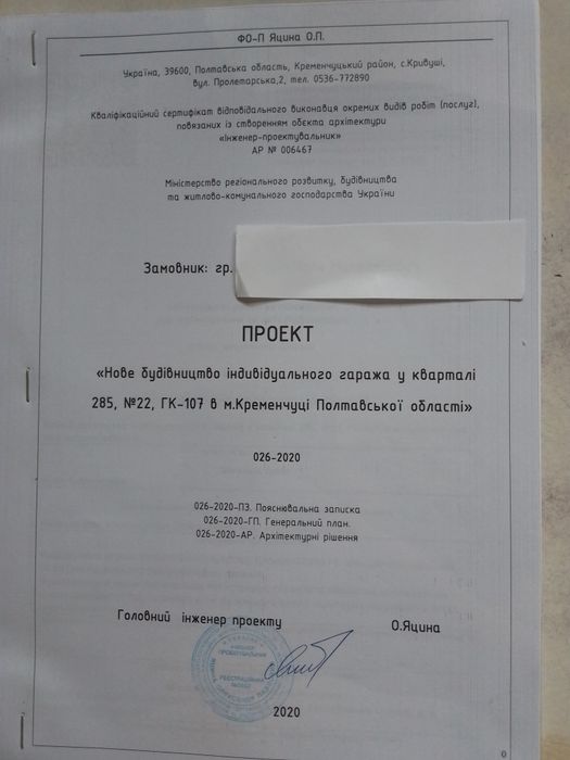 Місце розташування Полтавська область, м. Кременчук, квартал 285, 22, ГК-107