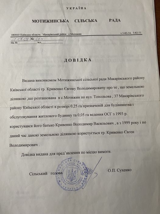 Продам земельну ділянку; Продам земельну ділянку під будівництво село мотижен бучанського району!! Участок рівний угловой стоїть кунг провели світло три фази