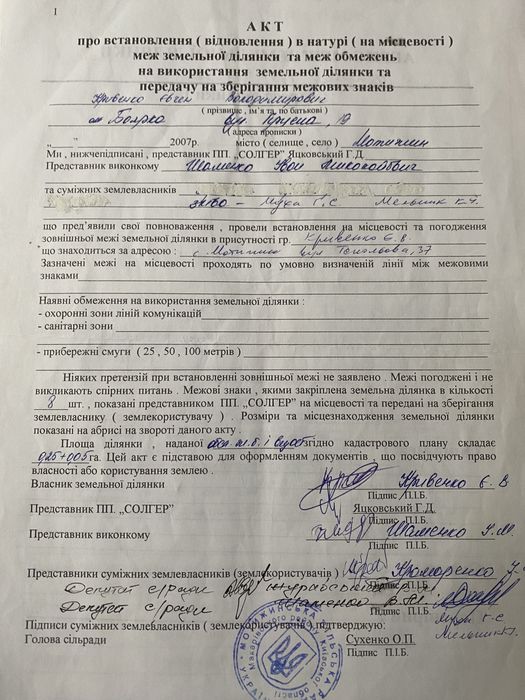 | Земельна ділянка: |