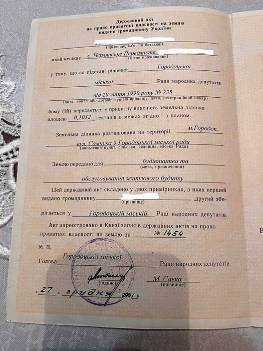 | Земельна ділянка: |