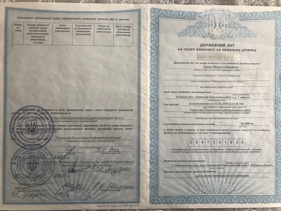 | Земельна ділянка: |