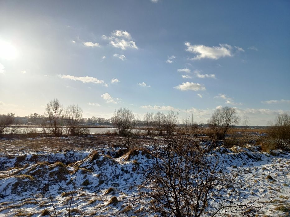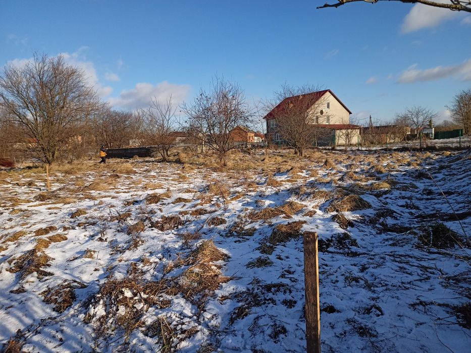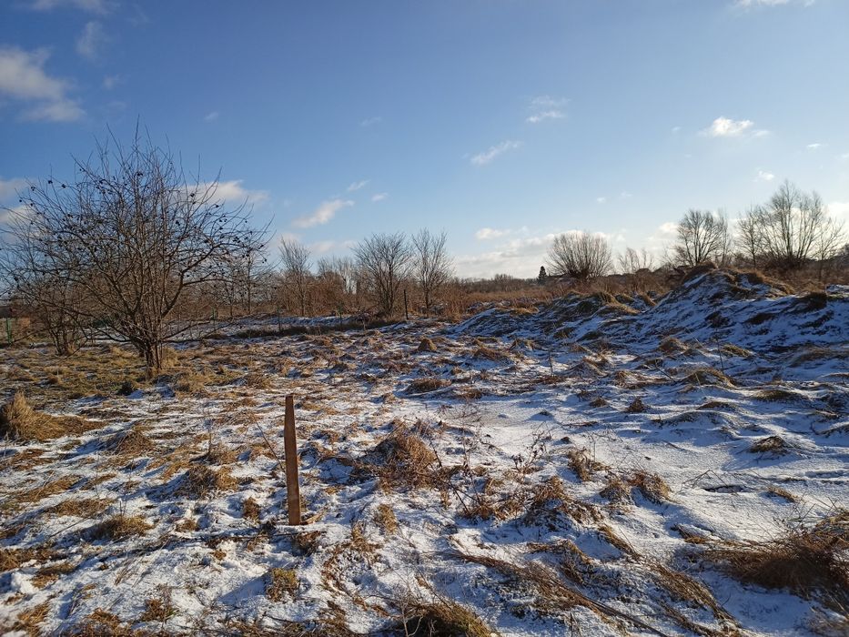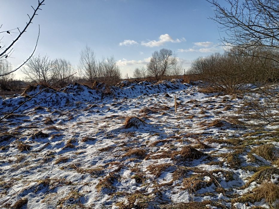 Продаж земельної ділянки; Земельна ділянка у Великому Любіні з фундаментом розмір якого 9×10. Комунікації поруч. Чудова місцевість, для втілення ідеї будівництва свого будинку у затишному та спокійному місці, навколо озер. Якщо придивитись, можна побачити забиті кілки - край території. Розміри фундаменту та кімнат розписані на фотографії. Можливий торг