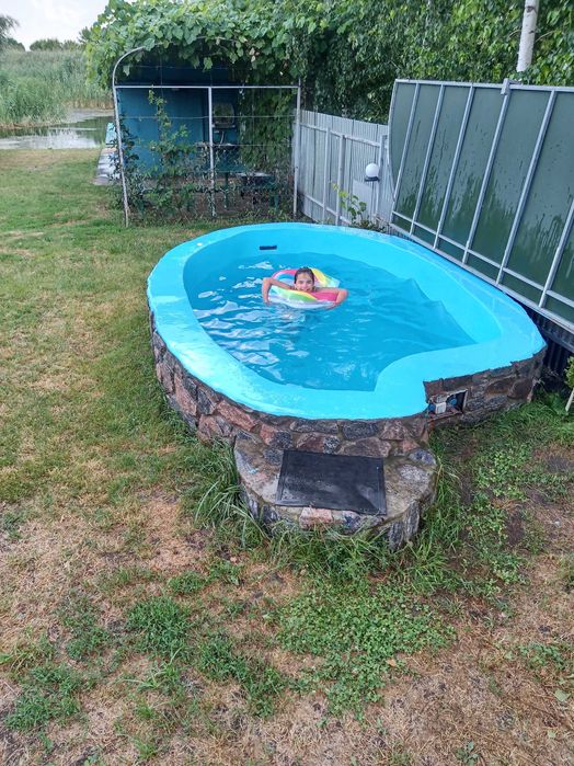 Во дворе: бассейн, беседка-навес для винограда, стоянка на два автомобиля и каменка до берега, орошение.