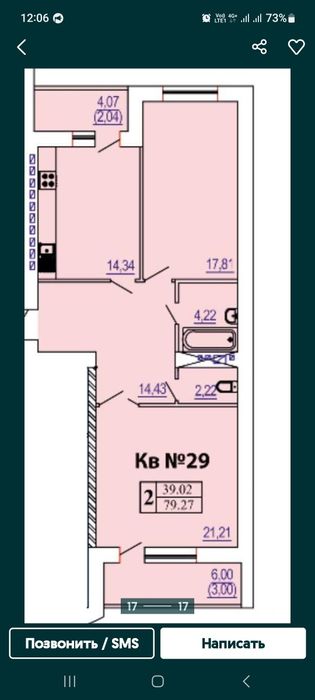 2 санузла, 2 комнаты и кухня. 2 балкона.