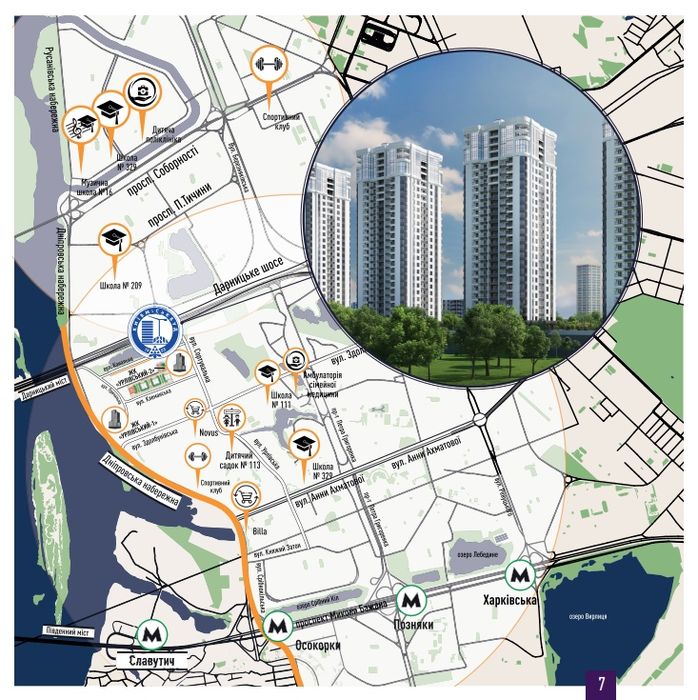 Дарницькому районі Києва, по вулиці Клеманська 7 у новому ЖК комфорт-класу Урлівський