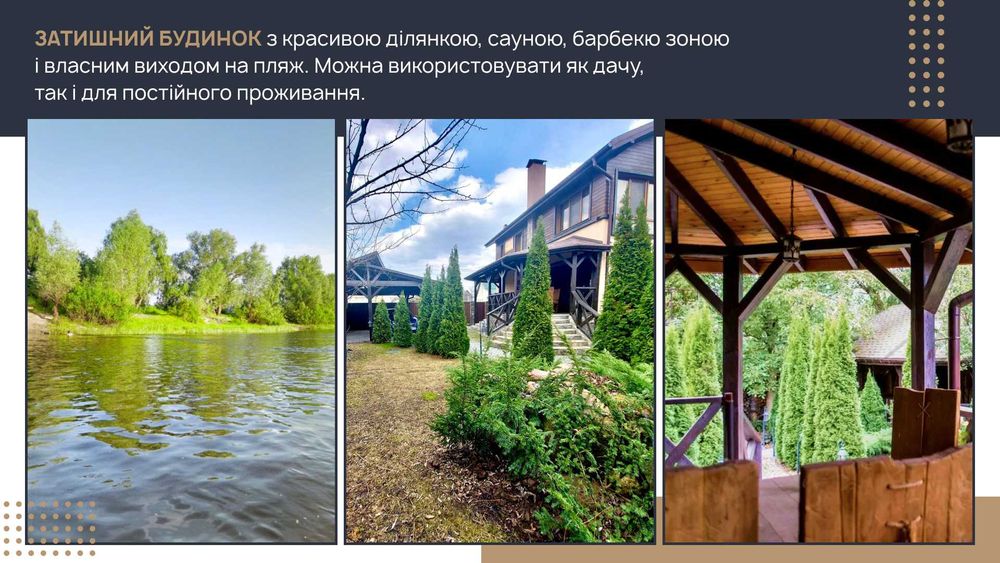 Розташування на 1 лінії, має окремий вихід до річки з піщаним пляжем!