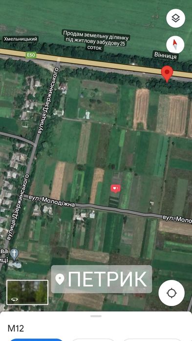 Земельна ділянка 25 с Петрик під забудову. Участок под строительство; Продам земельну ділянку під житлову забудову площею 25 соток у селі Петрик Вінницької області у 17 км від міста Вінниця, та 15 від районного центру смт Літин.