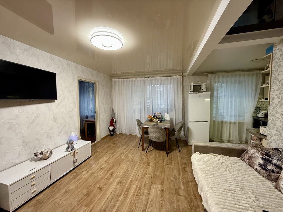 Евроремонт, раздельные комнаты, современная кухня с техникой, большая площадь — 56 м². Отличное расположение, тихий двор, рядом всё необходимое для комфортной жизни. Возможен торг реальному покупателю.