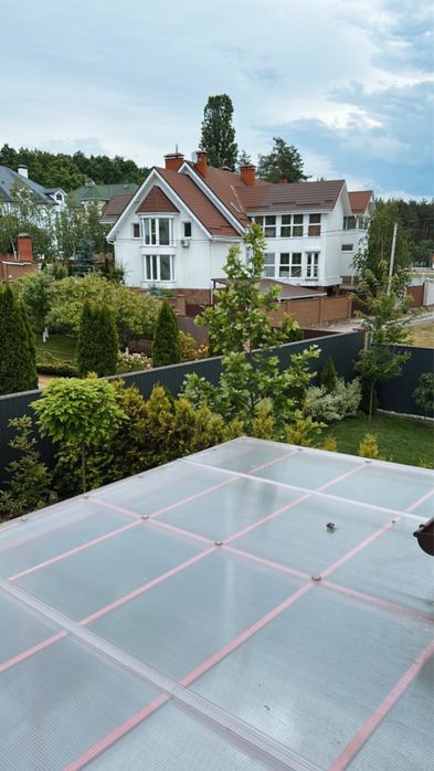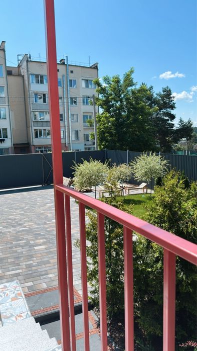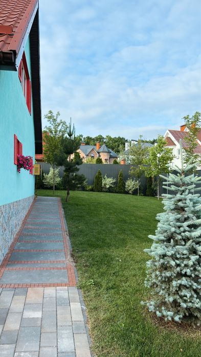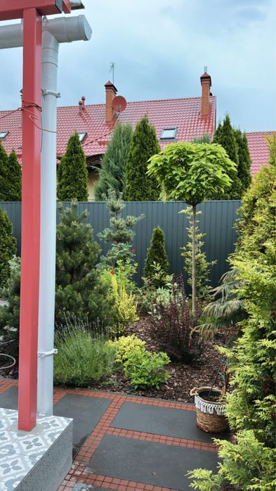 Із нюансів - дві 5-поверхівки біля дому. Але з вікон їх не видно і ділянка так зонована рослинами, щоб на терасах не було видимості з вікон. В умовах війни положення досить вигідне - дім виходить захований за ними.