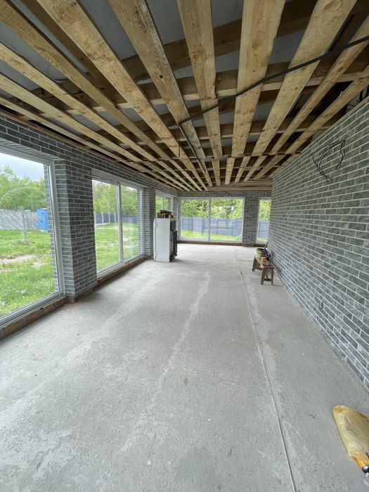 Приватний будинок Креничі; Приватний будинок розташований в с.Креничі Обухівського району. Будинок розташований на приватній земельній ділянці 25 соток, земельна ділянка огороджена капітальним парканом з автоматизованими воротами, ділянка межує з дивовижним мішаним лісом Будинок одноповерховий побудований у 2019 році із газоблока утеплений 100 пінопласт з клінкерною плиткою, перекриття втеплено мініральною ватою 200мм. В будинку розташовано 3 спальні кімнати та 1 спальна кімната для відвідувачів, два сан вузла та велика 84 кв вітальня з кухнею. Під будинком побудований капітальний підвал 88 кв.м. Також побудовано терасу 80 кв.м на якій встановлено енергозберігаючі розсувні вікна тобто терасу можливо використовувати як зимою так і літом. Розведено електро мережі, виведено кабеля під відеоспостереження, WiFi. На ділянці вибито скважину 105 метрів проведено каналізацію скептик 18 кубів . Площа будинку без тераси складає 296 кв.м. Перевагою ділянки є те, що вона межує з лісом, дуже гарний краєвид, близькість до озер, лише 5 хвилин на авто.
