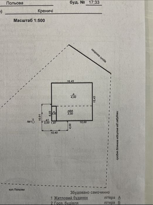 | Земельна ділянка: |