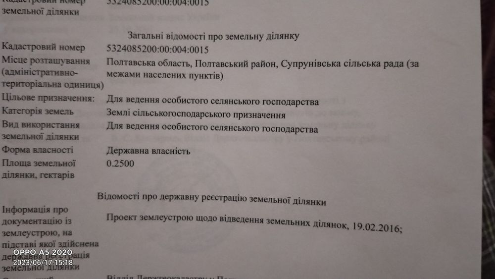 Продам земельну ділянку; Продам земельну ділянку с/г призначення поруч з зупинкою ГРЛ 5хв до ділянки,земля приватизована документи присутні . Торг.06******19 09******23.