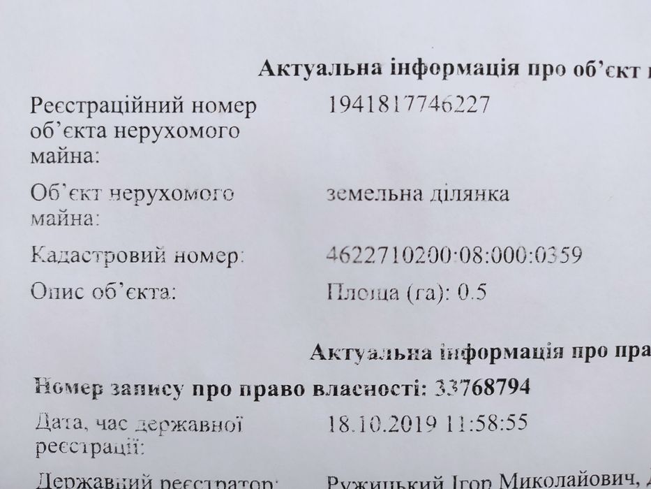 | Земельна ділянка: |