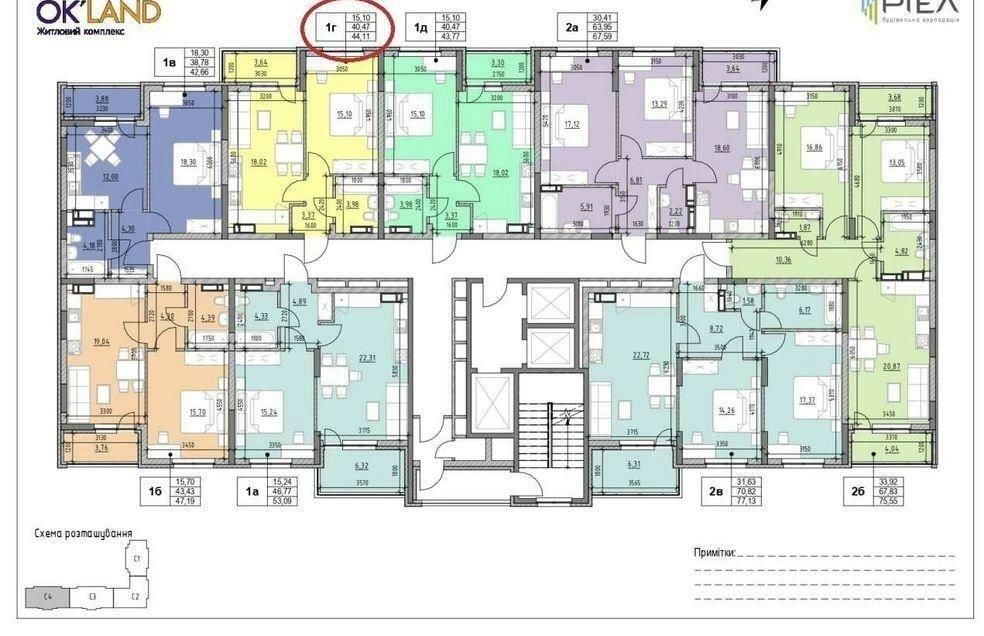 Квартира знаходиться у внутрішній частині поверху, без бічних стін, що межують із вулицею.