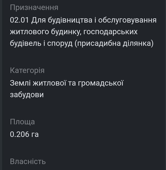 | Земельна ділянка: |