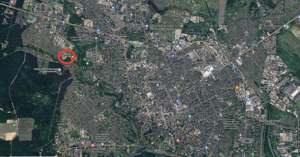 Зелена зона, поруч ліс та жіночий монастир. Район колишнього Мотокросу (не Малікова), їхати з центру можна біля лісу де жіночий монастир по вул. Короленка , або з Богунії поворот наліво біля лікарні (потім наліво вул Шептицького в кінець).