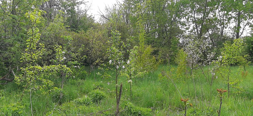 Є зрілий сад та уже почав плодоносити молодий. Різні сорти яблук, груш, слив, черешень. Виноград, вишня, обліпиха. Особливо гарно росте полуниця.