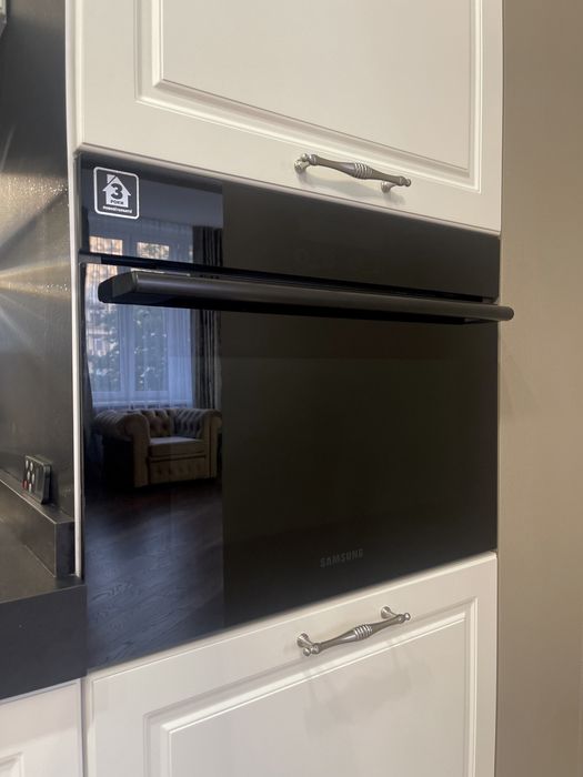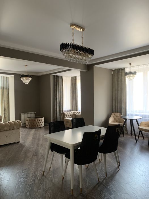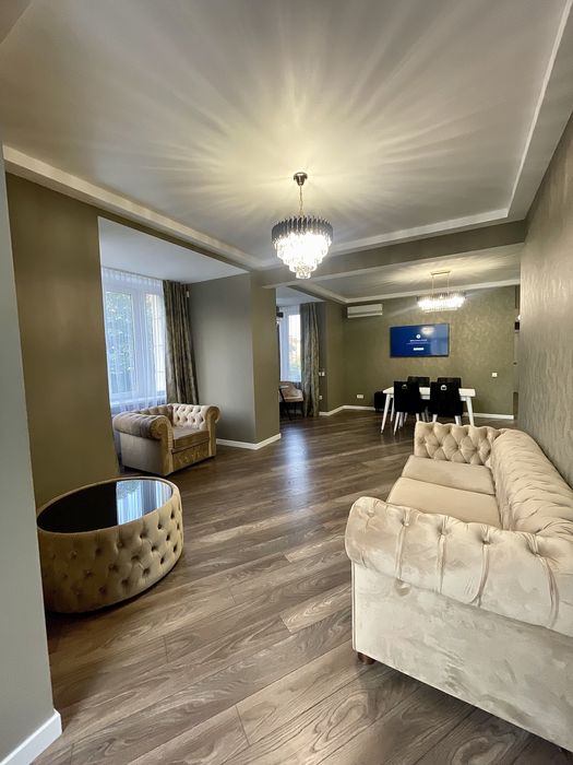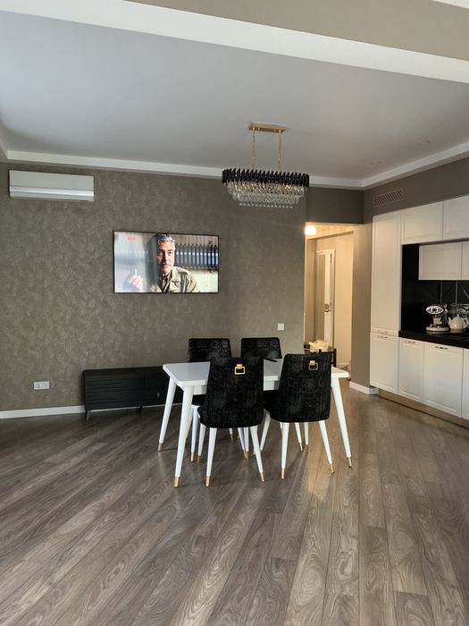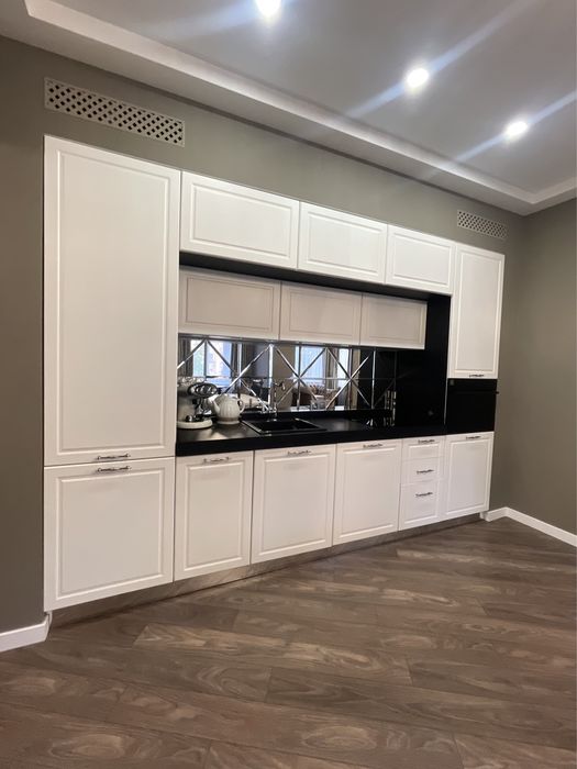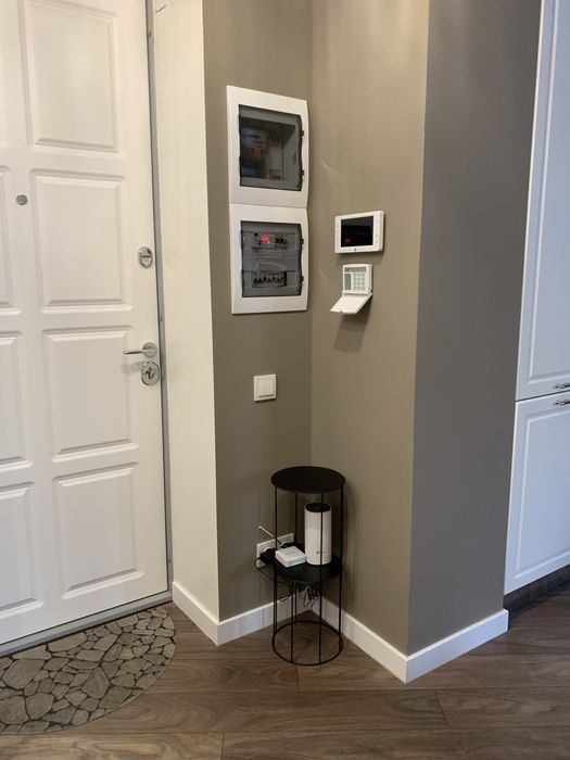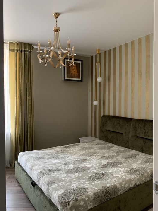 Велика кухня-вітальня та спальня, велике ліжко, гардеробна, пральна машина з функцією сушіння, робот-пилосос , інтернет, сигналізація, кондиціонери, посуд, праска, прасувальна дошка,духовка-мікрохвильовка, кавамашина,ковдра, подушки, постільна білизна,все необхідне для проживання.