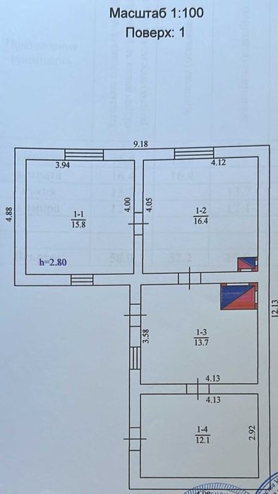 Три кімнати, кухня, кладова та приміщення для санвузла. Міжкімнатні двері частково замінені. Задня стіна будинку утеплена. Загальна площа будинку: 91 кв.м, житлова: 58 кв.м. с/г прибудови, опалення пічне/електричне. Були замінені: огорожа, перекриття, вікна, вхідні двері.