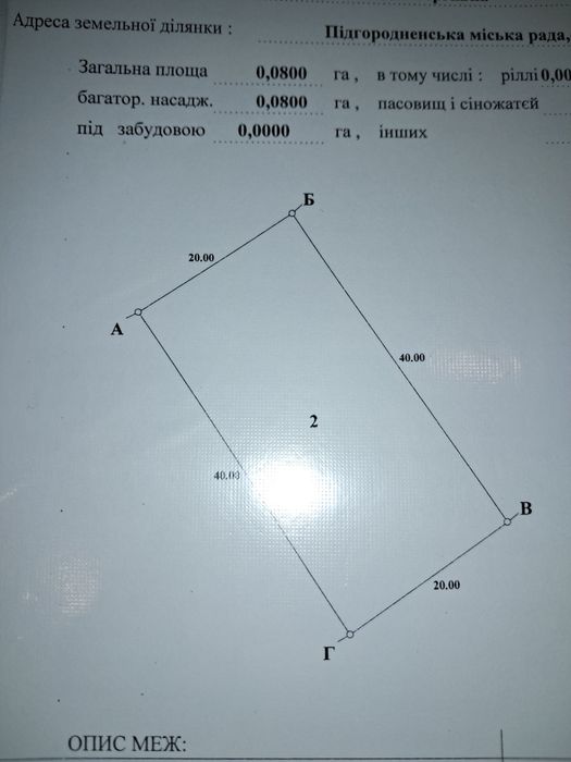 | Земельна ділянка: |