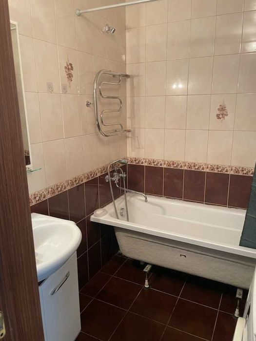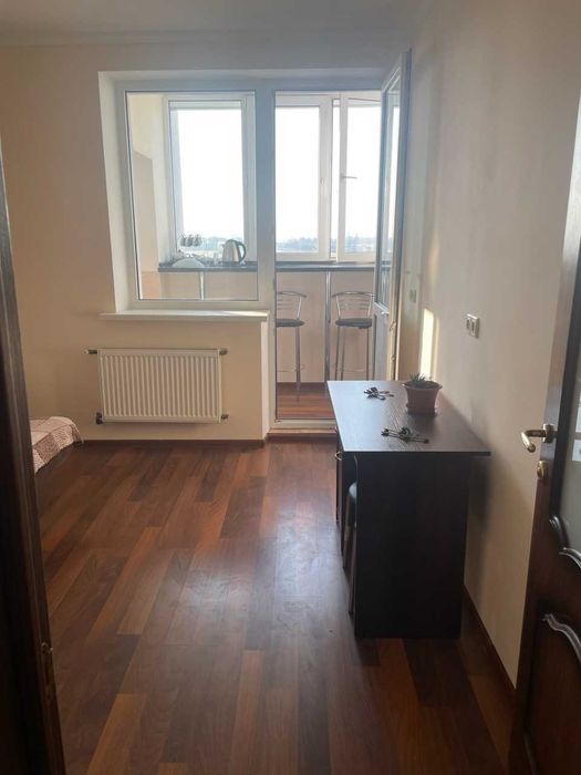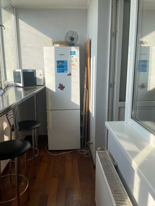 Здається в оренду однокімнтатна квартира, але по суті 2 кімнанта, оскільки кухня винесена на балкон. У квартирі є холодильник, мікрохвильовка, пральна машина, частково мебльована, на кухні стіл і стільці барного типу та все що є на фото. Ще новий двохспальний диван та Розібране 1 спальне ліжко.