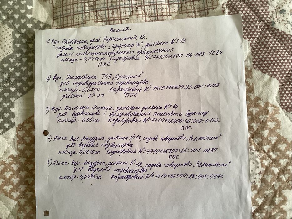 | Земельна ділянка: |