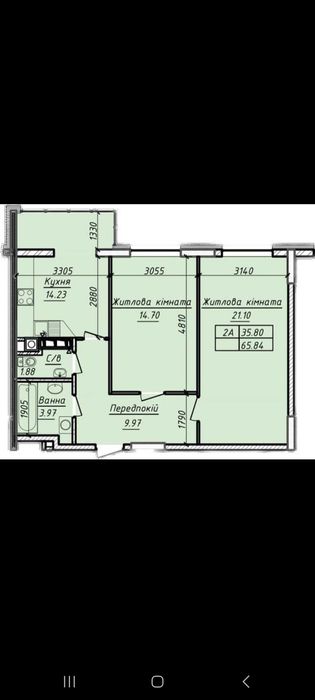 Загальна площа - 66.3 кв м. Кімнати 16 і 22 кв метрів, кухня - 16 кв метрів.